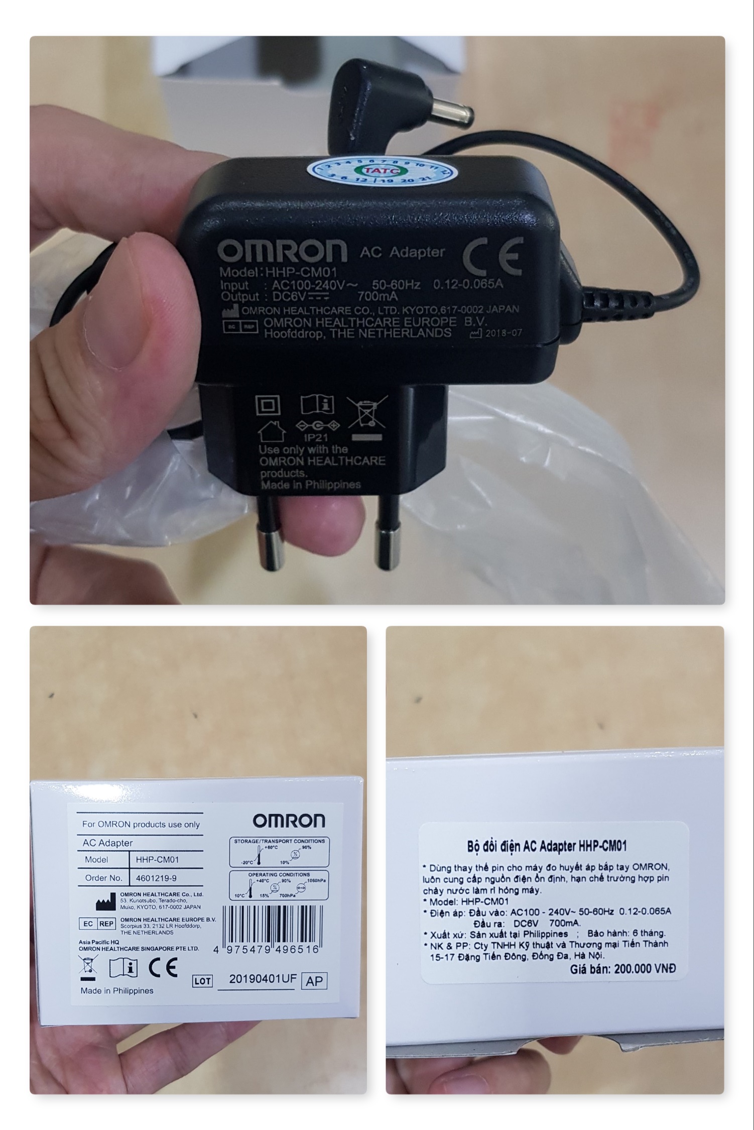 Từ tháng 08-2019, OMRON đã cho ra mắt bộ đổi nguồn Adapter mới có quy cách đóng gói như ảnh dưới. Quý khách có thể hoàn toàn yên tâm khi mua sản phẩm này.